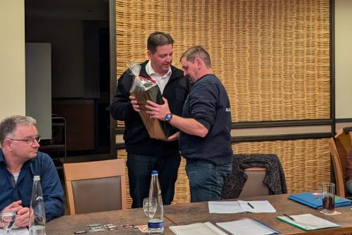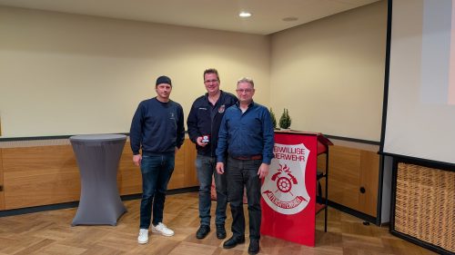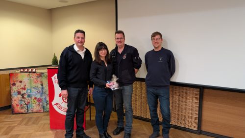 Vor den Beförderungen und Ehrungen konnte Weber auch heuer wieder den Übungsfleißigsten Teilnehmer auszeichnen. Claus Jerina besuchte 23 von 24 Hauptübungen und bekam in diesem Jahr das Präsent.